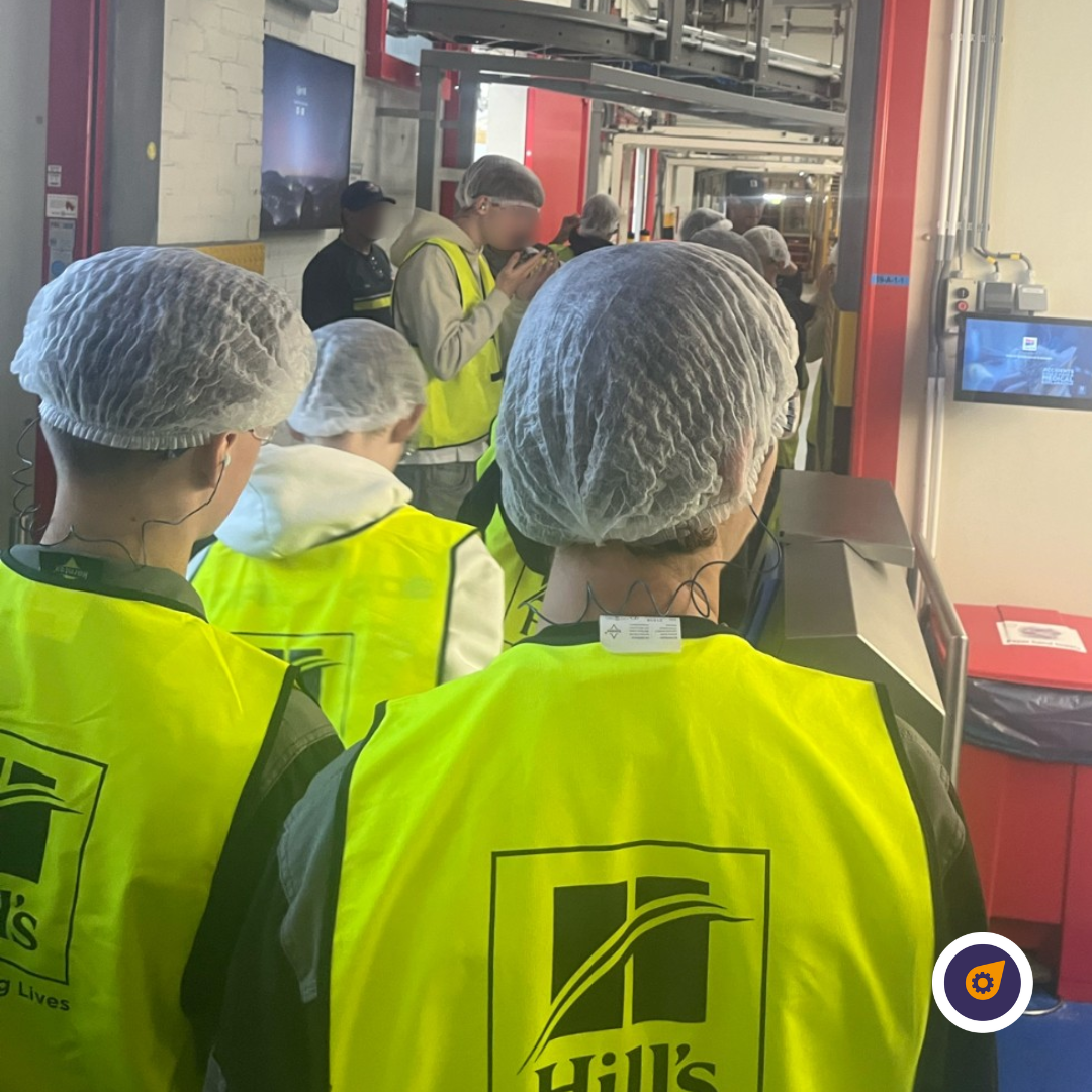 Na een korte introductie kregen de leerlingen een leerzame opdracht: ze mochten zelf een luchtslot plaatsen op een afsluiter. Dit had alles te maken met veiligheid op de werkvloer. En veiligheid staat bij Hill’s duidelijk voorop! Iedereen draagt dezelfde beschermende werkkleding en er wordt gewerkt volgens het Lock-out Tag-out-systeem en duidelijke procedures (SOP’s) om allesveilig én efficiënt te laten verlopen.