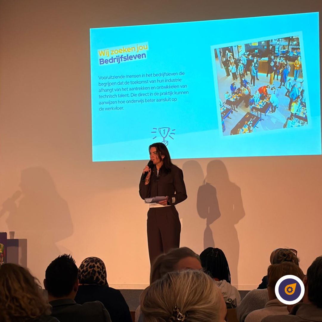 Met haar presentatie nam zij de aanwezigen mee in het verhaal achter de campagne en het belang van structurele samenwerking tussen scholen, bedrijven en overheid. Door elkaar te vinden en samen te werken, kunnen we jongeren écht enthousiasmeren voor techniek en technologie.